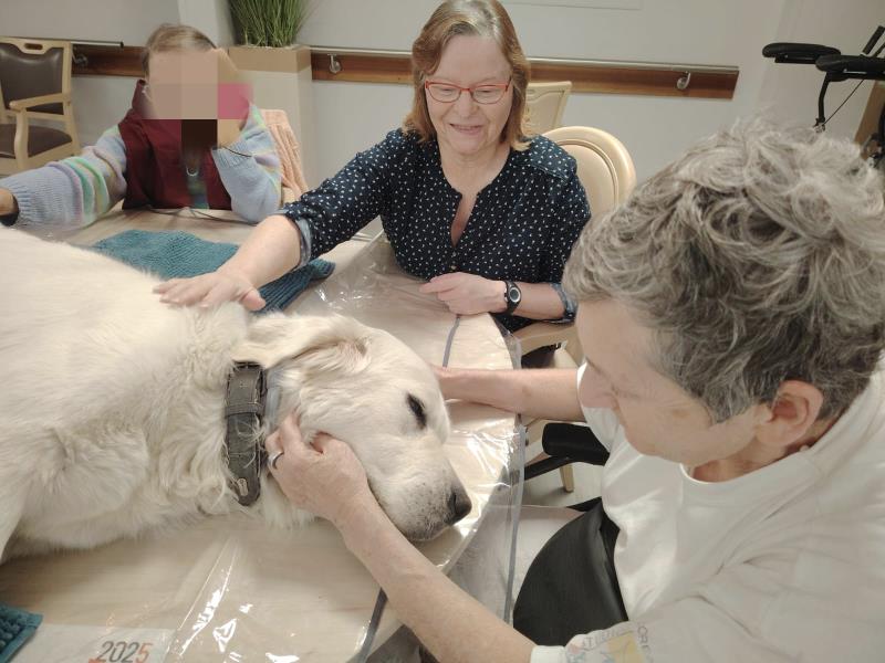 Tous les mercredis matins, la résidence vibre au rythme des battements de cœur… et des petites pattes ! À l’initiative de Sylvie l'animatrice et sous l’animation bienveillante de Jennifer, nos résidents vivent un moment hors du temps grâce à une séance de médiation animale, haute en tendresse.